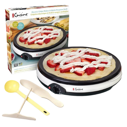 Superfícies antiaderentes e acessórios inclusos, como espátulas e niveladores, facilitam ainda mais o preparo e a finalização dos crepes.