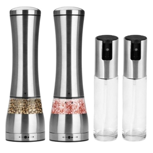 Utilizei o conjunto de moedores Mikah777 e fiquei satisfeito com o desempenho. O design prateado é elegante e se destaca em qualquer mesa. O material parece ser de qualidade, proporcionando uma boa durabilidade.